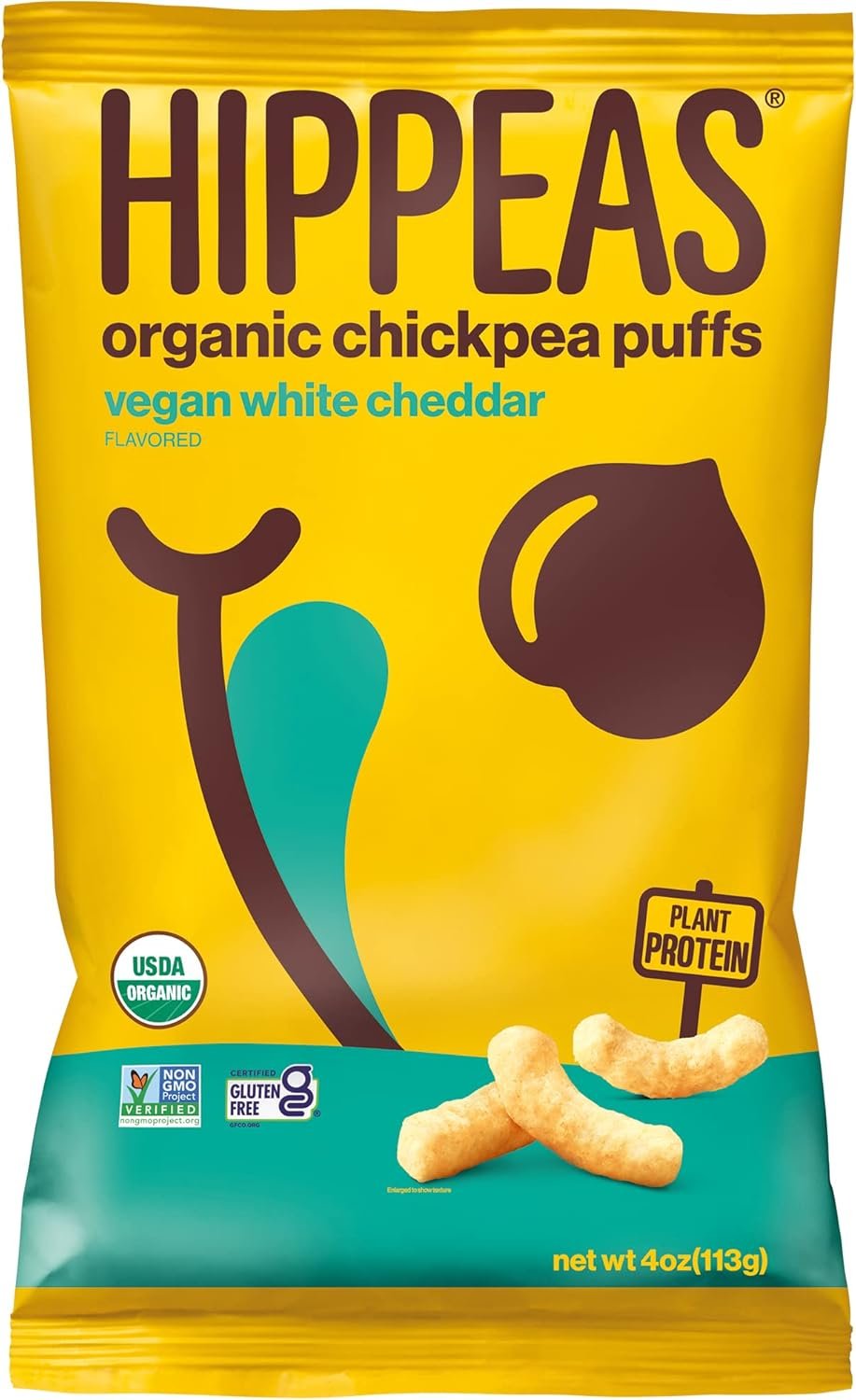 - GOODNESS FOR MIND BODY & SOIL – HIPPEAS are USDA Organic. Certified Gluten-Free. Vegan. Kosher. Non-GMO. with No Peanuts. Tree Nuts. or Soy. With 4g of protein and 3g of fiber per 1 ounce serving. HIPPEAS are the new go-to snack for those who demand great taste and high-quality ingredients for themselves and their families. Better snacking for all!