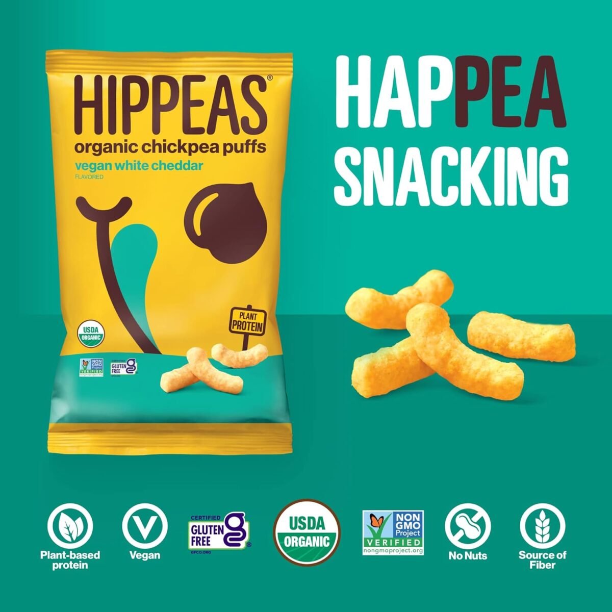 - WHAT ARE HIPPEAS? Organic Chickpea Puffs are made from the humble. but mighty legume baked into a light and crunchy puff.