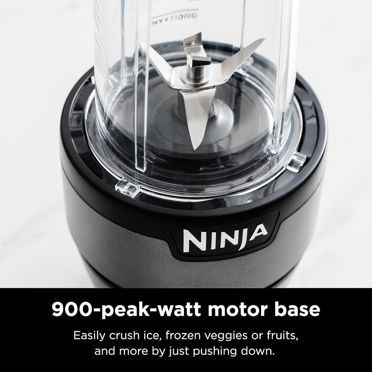 - 900 PEAK WATT BASE: The intuitive 900-peak-watt push-to-blend motor base powers through everything inside the cup to give you the best of Ninja blending.
